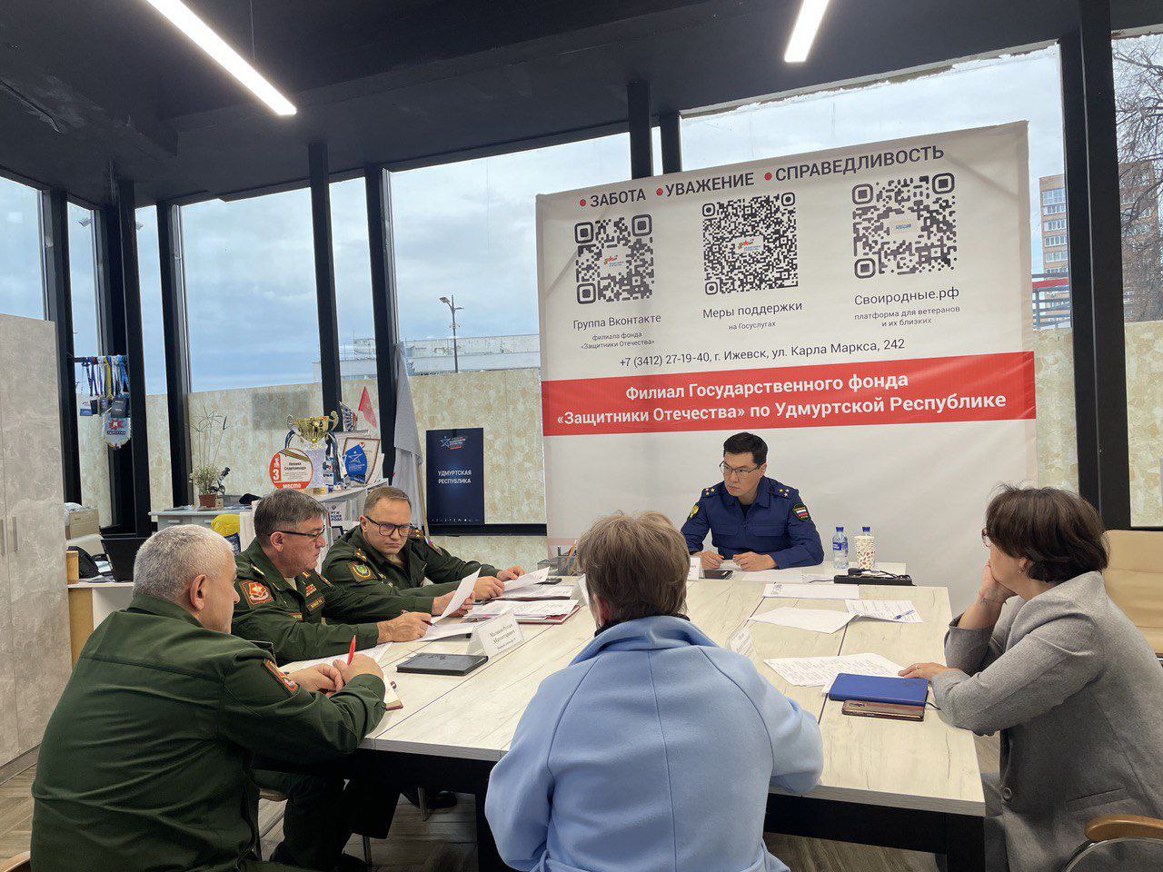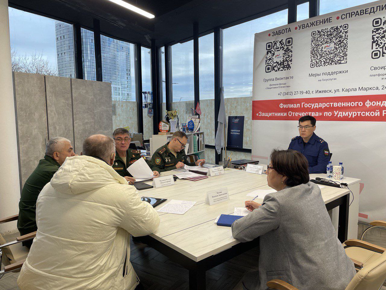 Заместитель прокурора Удмуртской Республики Дмитрий Хобраков совместно с военным прокурором Ижевского гарнизона Владиславом Михалевичем, военным комиссаром Удмуртской Республики Рустамом Маликовым и руководителем регионального отделения Государственного фонда поддержки участников специальной военной операции «Защитники Отечества» Максимом Шумихиным провели прием участников специальной военной операции и членов их семей.