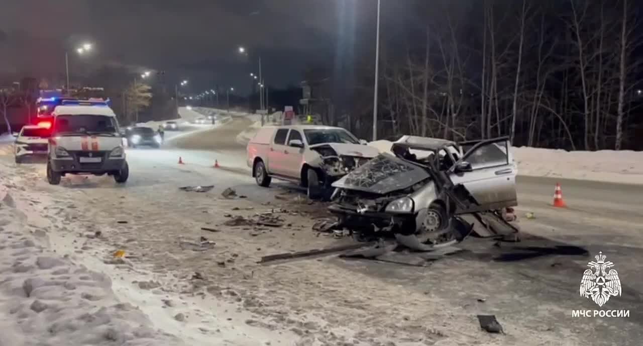 Столкнулись Lada Priora и Sollers. Скончалась женщина 43 лет, еще 3 человека, среди которых 10-летний ребенок, госпитализированы.