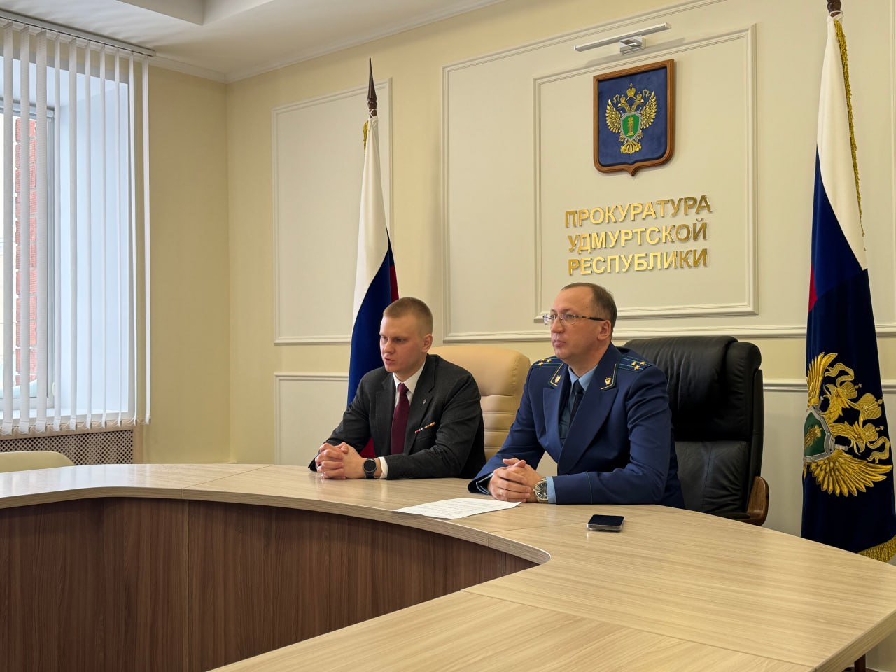 В прокуратуре Удмуртской Республики состоялось патриотическое мероприятие, в котором принял участие заместитель министра молодежной политики Удмуртской Республики Михаил Черничкин, ветеран боевых действий, проходивший службу в зоне специальной военной операции.