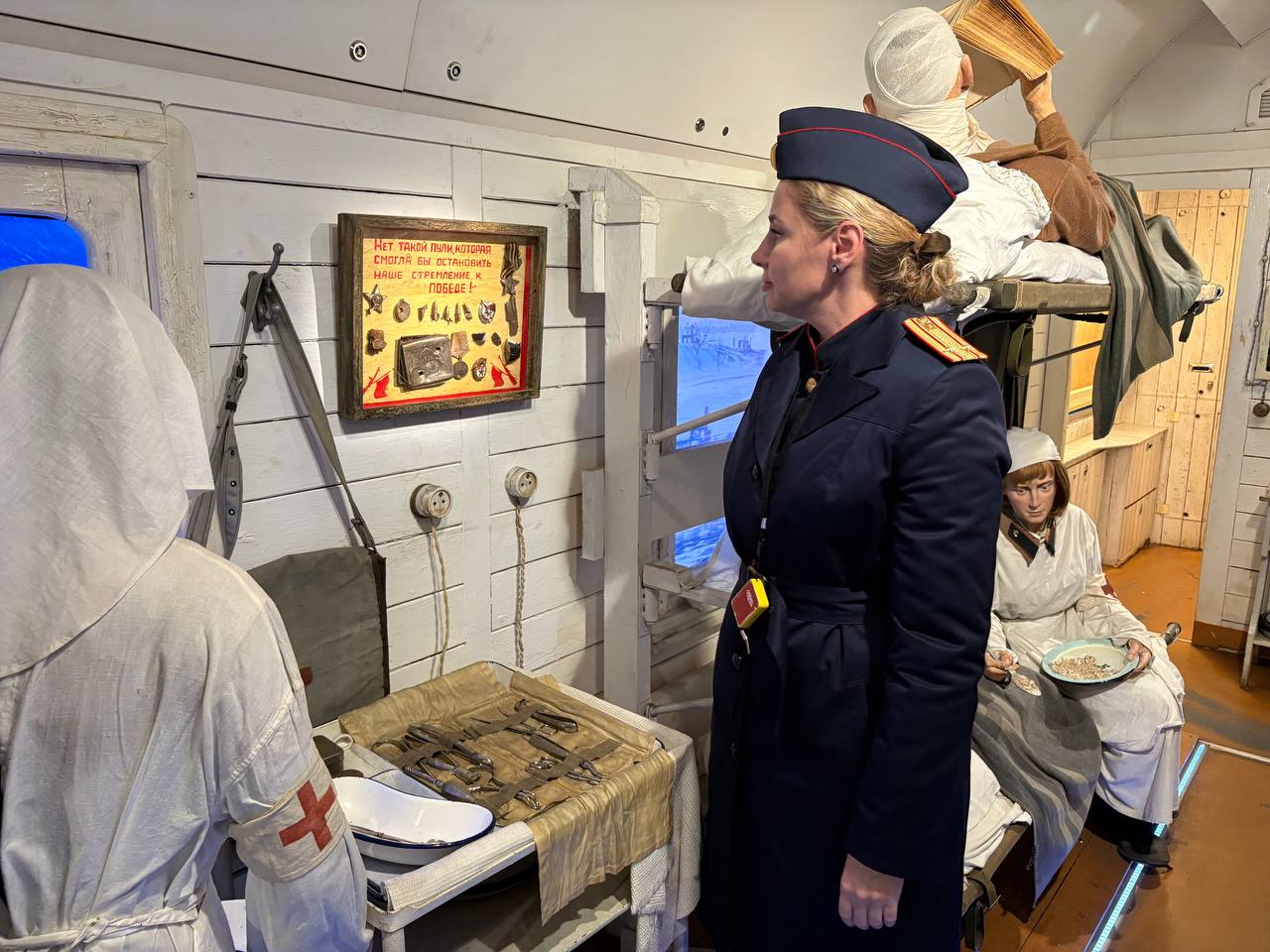 «Поезд Победы» представляет собой иммерсивный музей, развернутый в десяти вагонах состава. Каждый вагон воссоздает атмосферу и хронику ключевых событий Великой Отечественной войны. Использование современных технологий — дополненной реальности, объемного звука и предельно реалистичных скульптурных композиций — создает у посетителей полный эффект присутствия и позволяет глубоко погрузиться в трагические и героические страницы истории нашей страны.