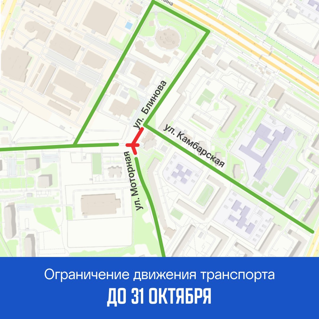 До 31 октября ограничено движение транспорта по улице Блинова от Камбарской до Моторной.