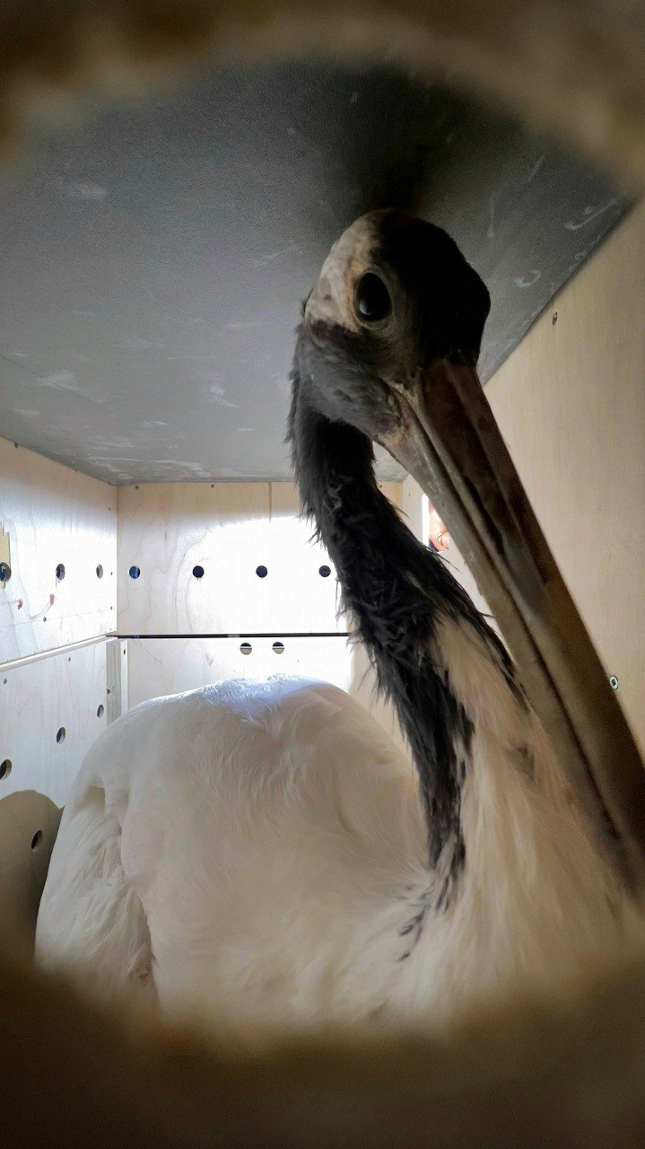 Японский журавль Татеяма появилась на свет в 2024 году. Теперь, когда она подросла, её увезли в зоопарк Калининграда, где обитает самец. Планируется, что птицы образуют крепкую пару. А чтобы комфортно и безопасно перевезти Татеяму, была разработана нестандартная транспортная клетка.