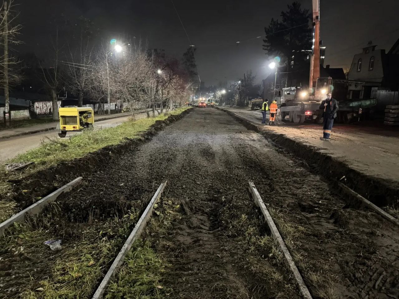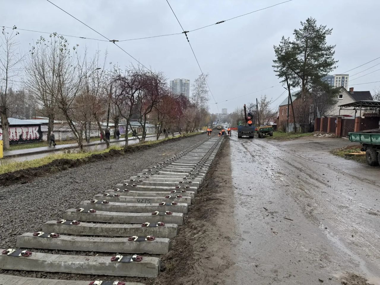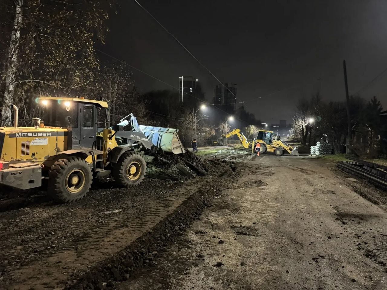 К выполнению работ приступили в 22:00 24 октября: были демонтированы старые рельсы, подготовлен котлован к укладке новой рельсошпальной рештки. В настоящее время проводится укладка новых трамвайных путей и шпал.