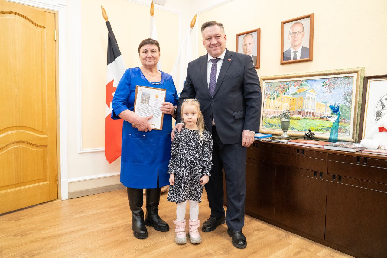 А дочери Андрея Васильева вручил памятный значок «Мой папа – герой». Ими по инициативе Совет Отцов награждаются дети участников спецоперации.