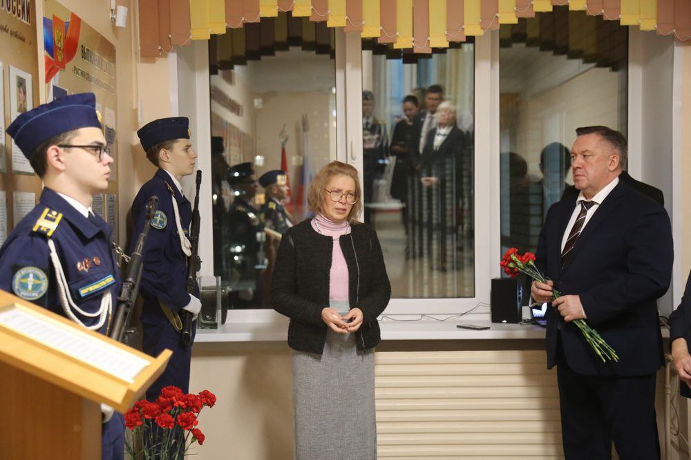 Глава Ижевска Дмитрий Чистяков вместе с родственниками, педагогами и одноклассниками открыли Стену памяти, куда занесены имена Героев.