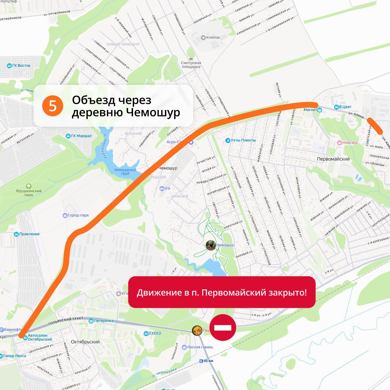 Ремонтируемый участок можно объехать по Сарапульскому тракту через деревню Каменное и село Завьялово, либо по участку Объездной Ижевска, от региональной дороги Ижевск — Воткинск до автодороги Ижевск — Аэропорт.