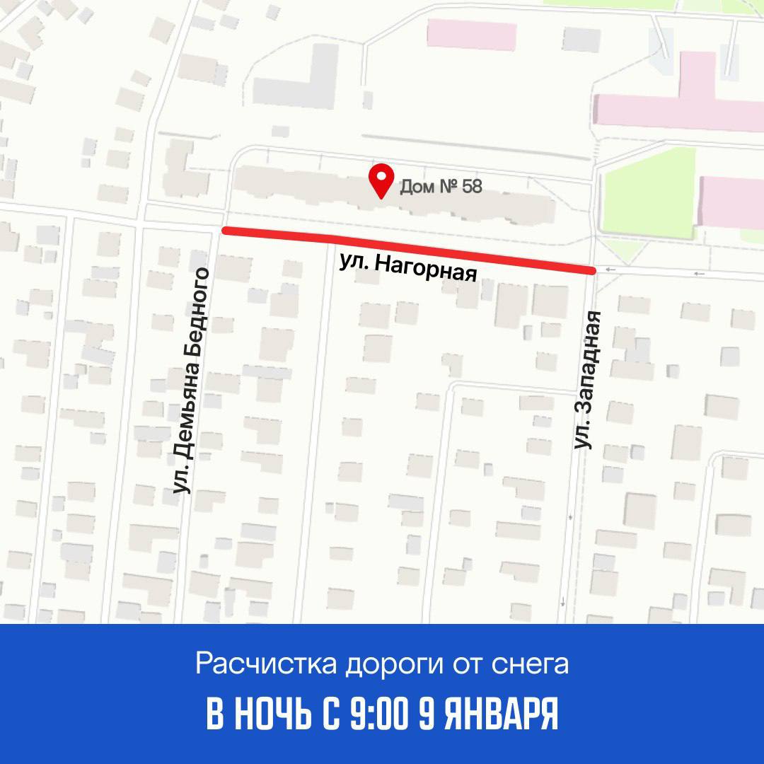 9 января с 9:00 до окончания работ - по ул. Нагорной