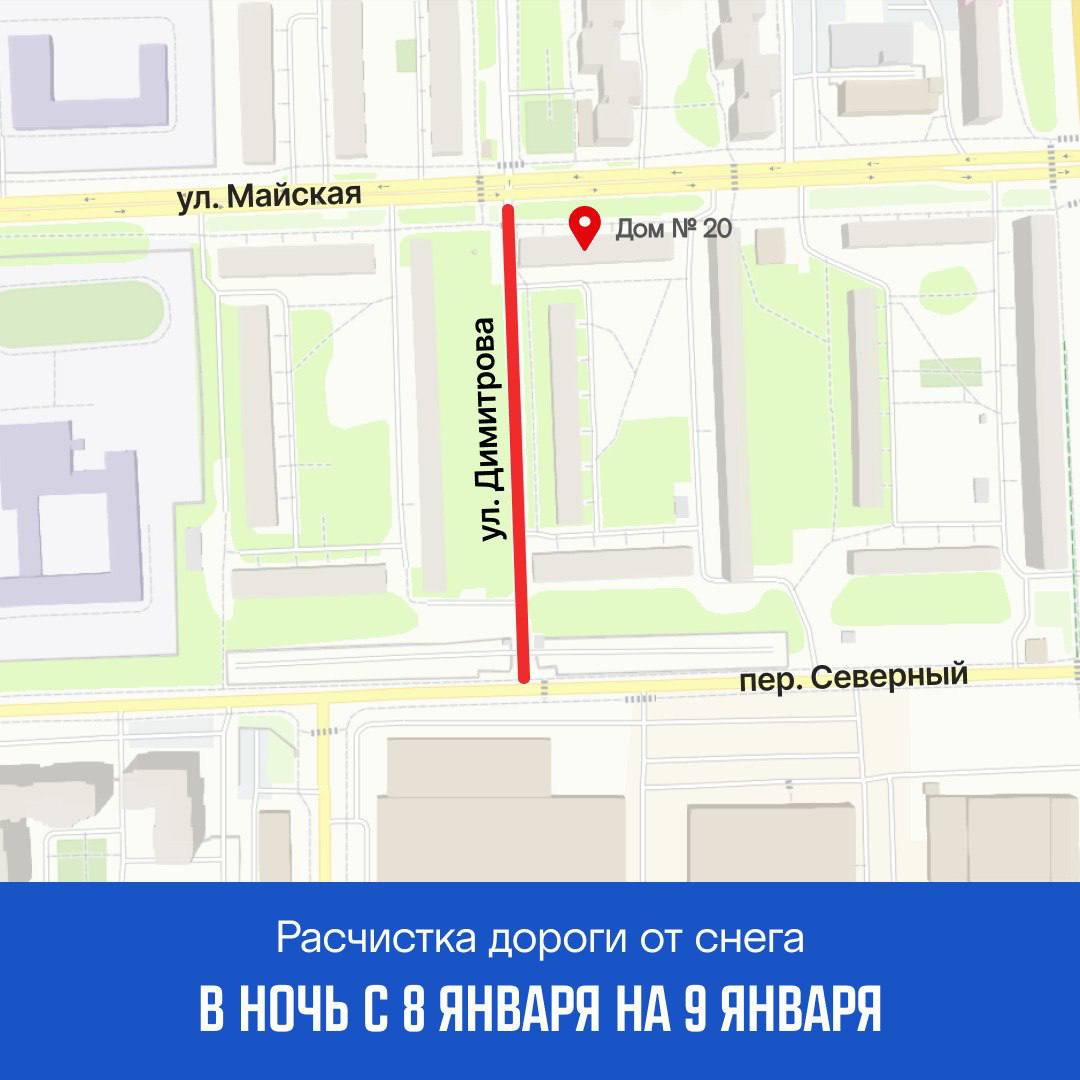 В ночь с 8 на 9 января - по ул. Димитрова от ул. Майская по пер. Северный