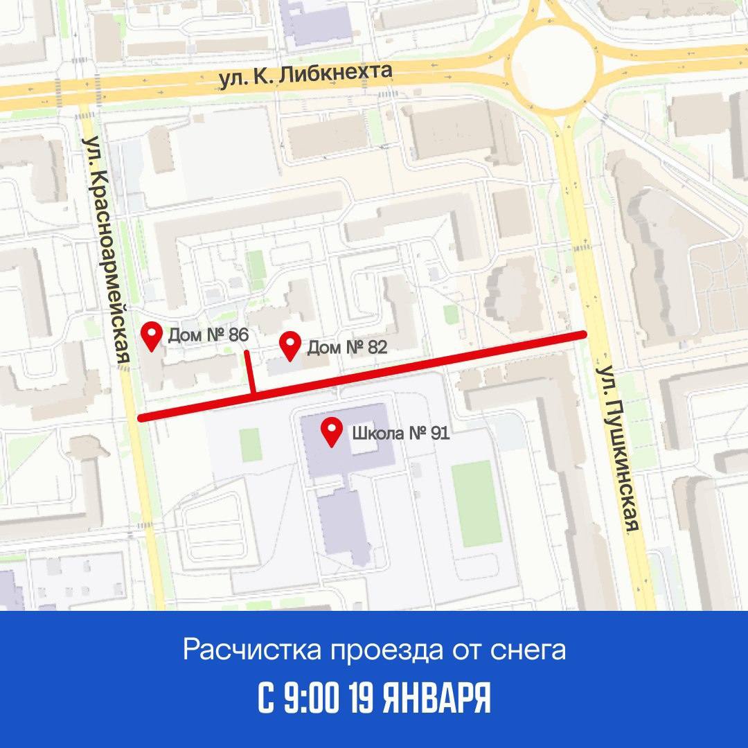 - проезд от ул. Красноармейская вдоль школы № 91 в сторону ул. Пушкинская