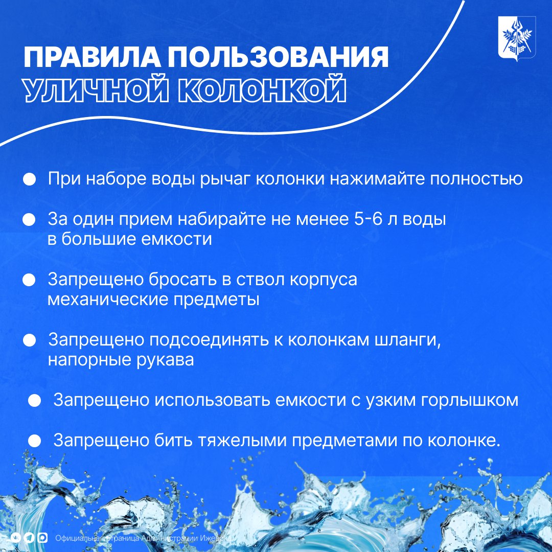 Аварийные бригады Ижводоканала реагируют на каждое обращение горожан и оперативно выезжают на устранение неполадок. А чтобы поломок было меньше, читайте в карточке правила пользования уличными колонками.