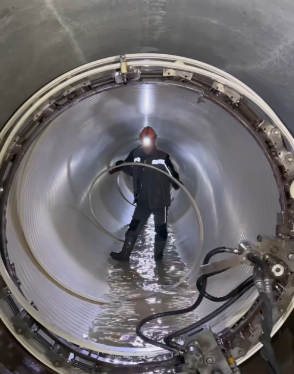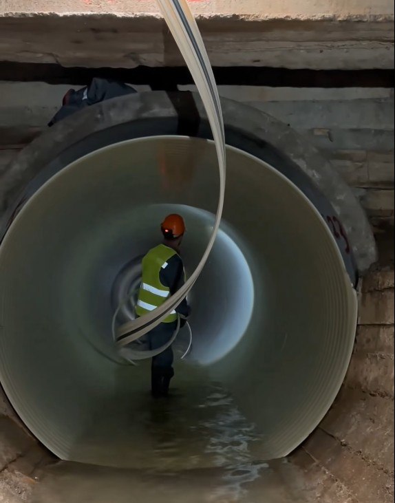 Сейчас восстанавливается герметичность коллектора, подготовлены подъездные пути, проведена прочистка и промывка трубопровода. При строительстве применяют метод санации, то есть все работы проводятся под землей, без раскопок снаружи. Это значительно ускоряет процесс и делает его менее затратным. Работы идут в графике, из запланированных в этом году 1650 метров рабочие санировали уже 1030 метров трубы,