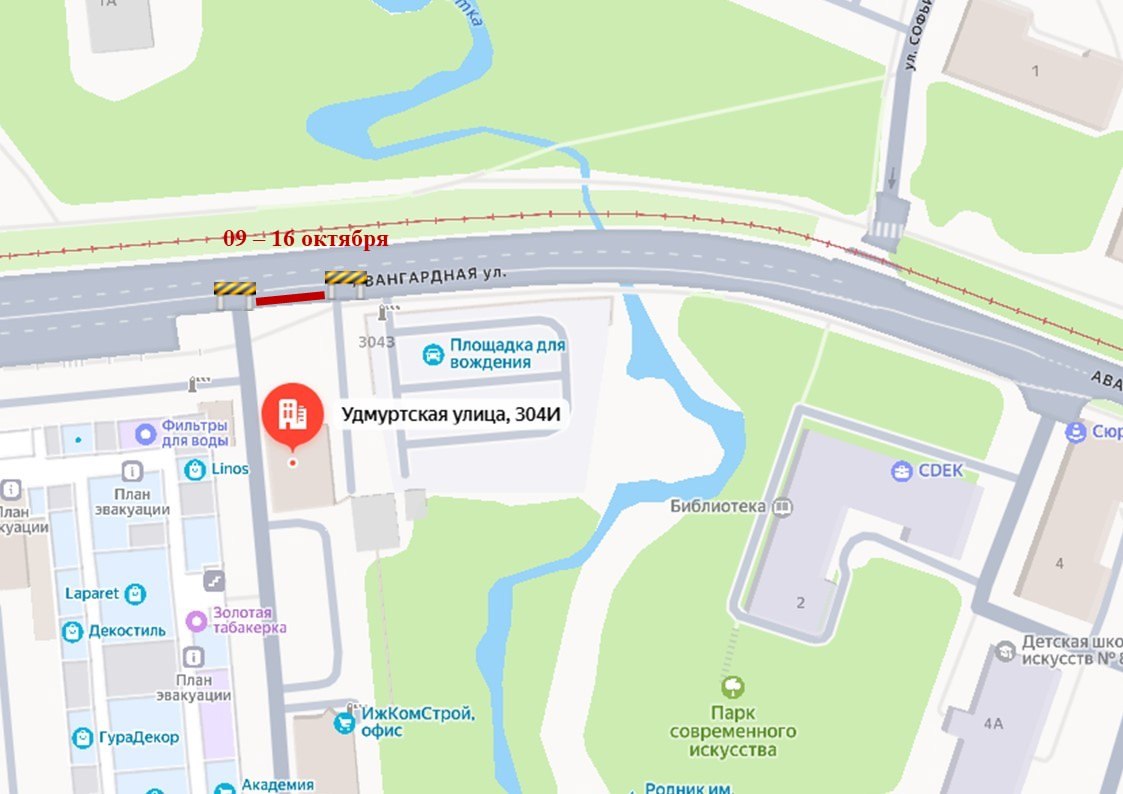 С сегодняшнего дня и до 16 октября на улице Авангардной в Ижевске будет перекрыта крайняя правая полоса со стороны ТЦ «Гвоздь»