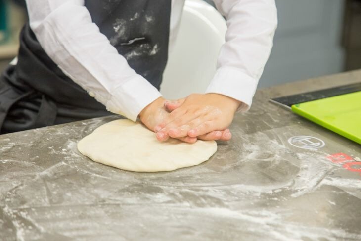 Тогда и нажимать сильно не придётся. Мягкими, но уверенными движениями раскатывайте тесто бутылкой, пока вам не понравится результат.