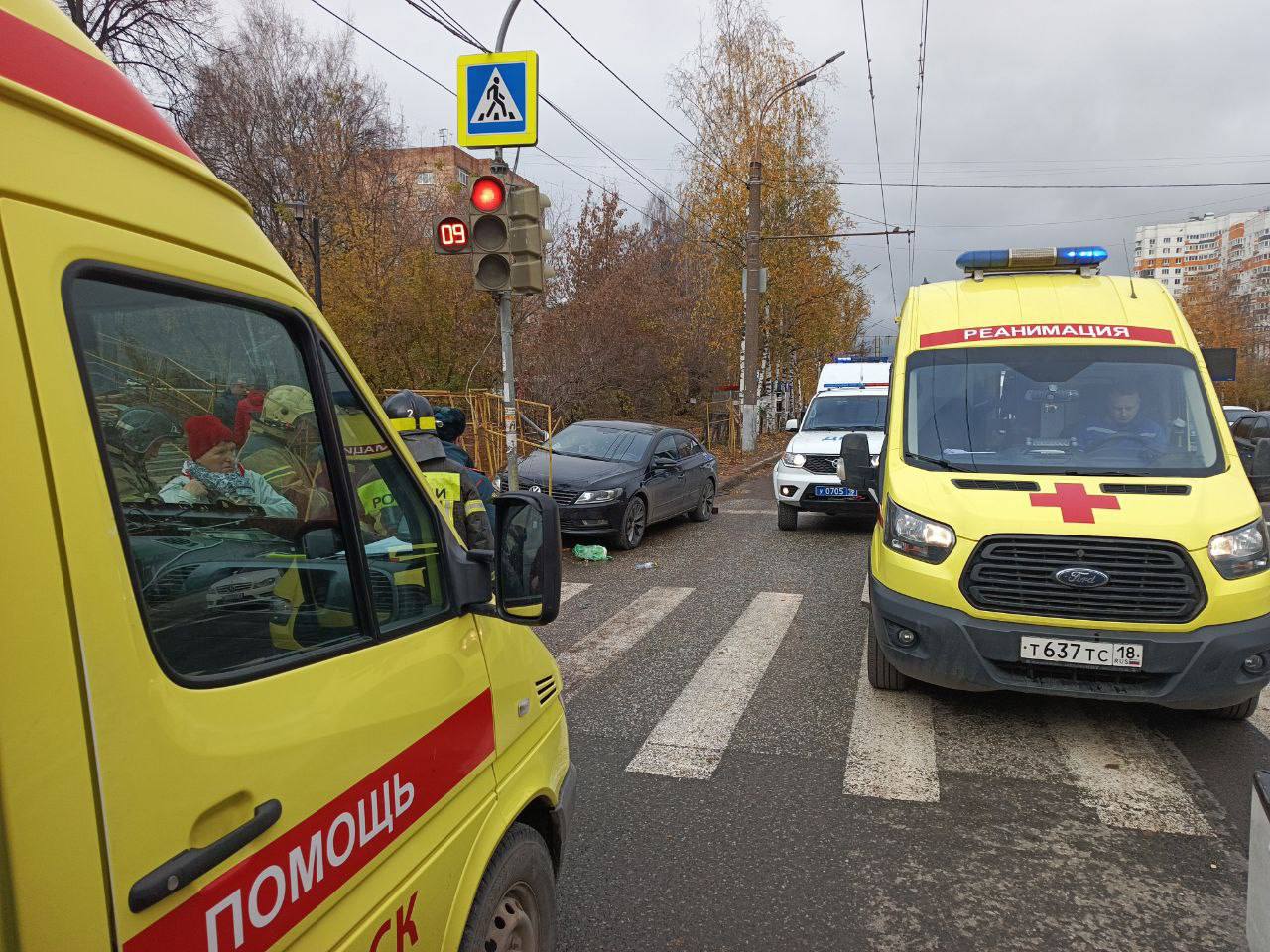 Инцидент произошел сегодня около 10 часов напротив дома 230 по улице Удмуртской в Ижевске. 23-летний водитель автомобиля «Фольксваген Пассат» не справился с управлением и совершил наезд на пятерых пешеходов: 15-летнего юношу, девочек 9 и 12 лет, женщин 38 и 73 лет, а затем врезался в световую опору, сообщила Госавтоинспекция Удмуртии.