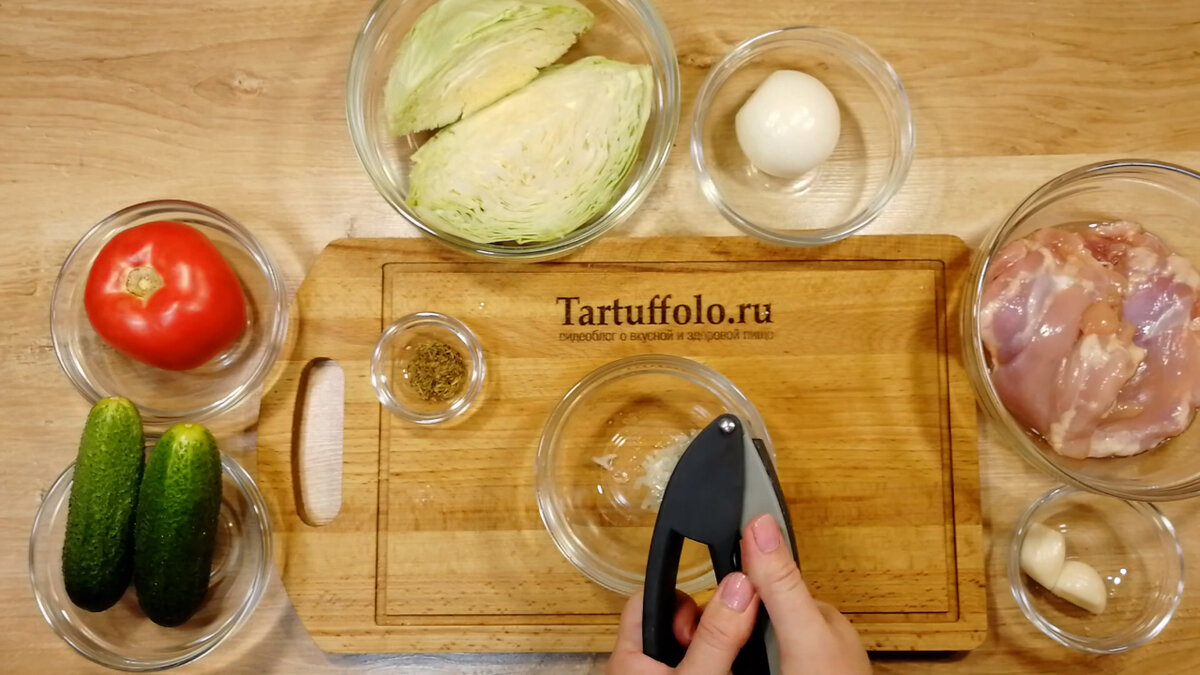 - 3–4 зубчика чеснока, выдавленных через пресс;