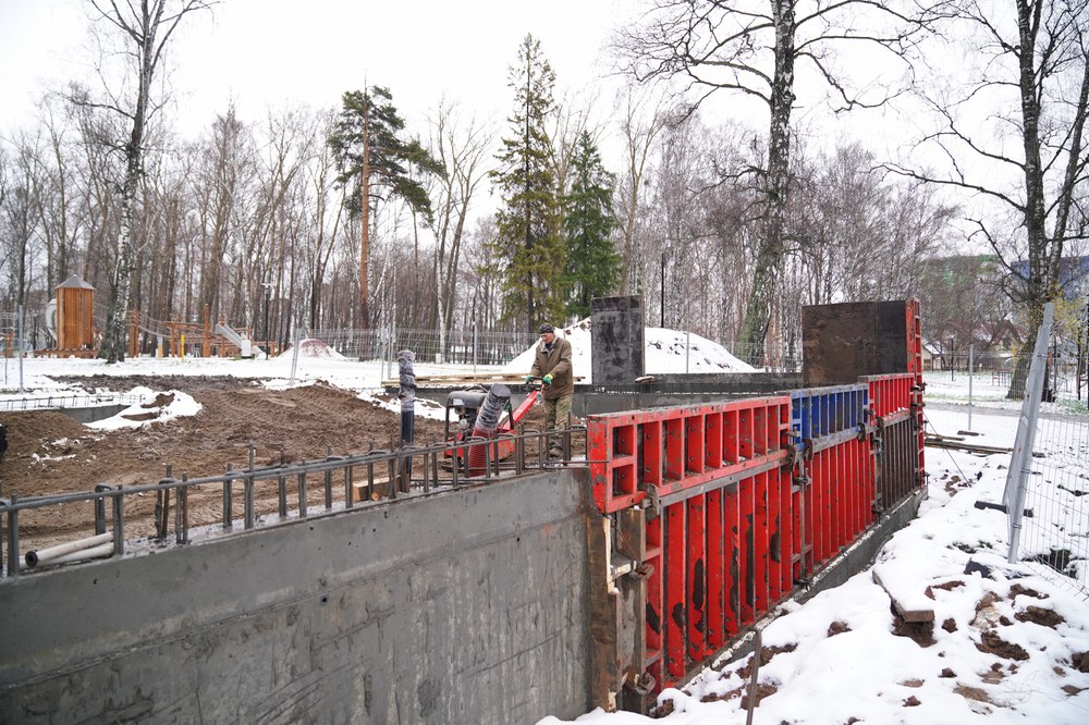 Завершается бетонирование оснований для размещения малых архитектурных форм. После подрядчик приступит к прокладке инженерных коммуникаций.