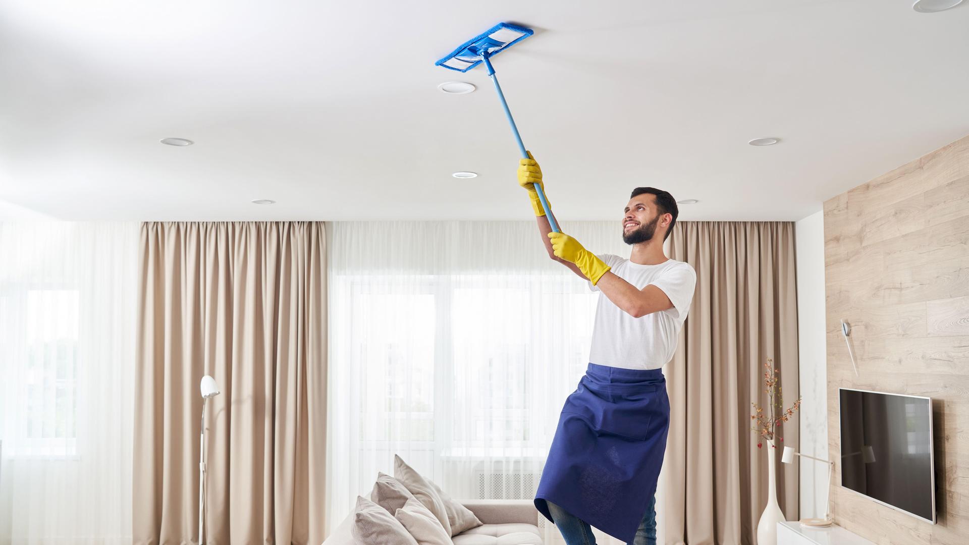 Часто во время уборки хозяйки протирают и моют все, кроме натяжных потолков — на них не остается ни сил, ни времени. Однако есть простые способы, как в считанные минуты отмыть их от налипшей пыли и грязи.