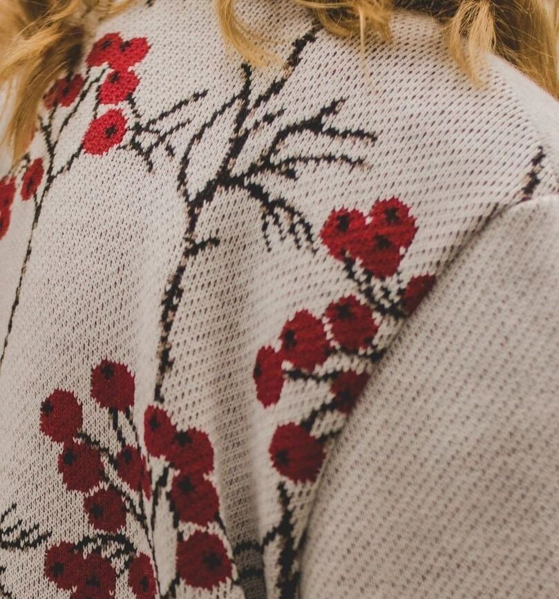 Все вещи — пуловеры, кофты, рубашки и сумки — украшены принтом с с ягодами и листьями рябины — одного из символов столицы Удмуртии.