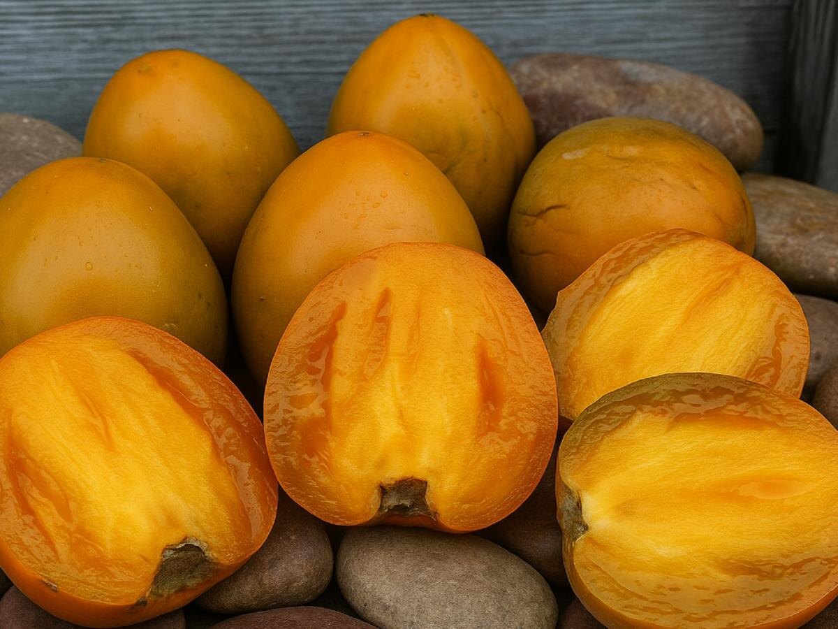 Этот сорт отличается не только внешностью. Плоды "Суровой дыни" превосходят привычные томаты: они крупные, сердцевидные, с выраженными рёбрами, напоминающими дыню. При разрезе их мякоть оказывается маслянистой, без пустот и с нежным ароматом, похожим на спелую дыню. Вкус — мягкий и сладкий, почти десертный, без характерной томатной кислинки.