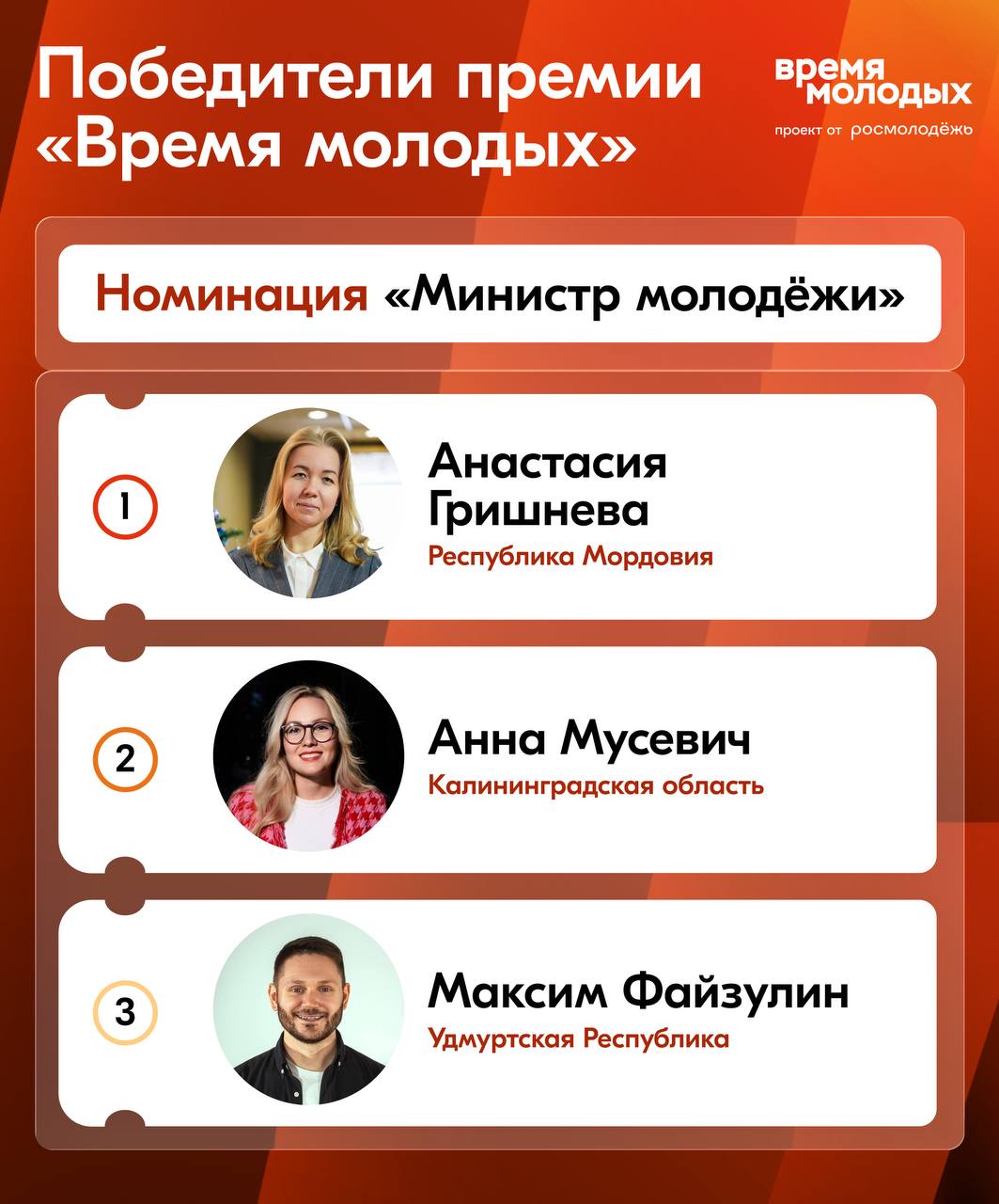 Победители Премии «Время молодых» в номинации «Министр молодёжи»