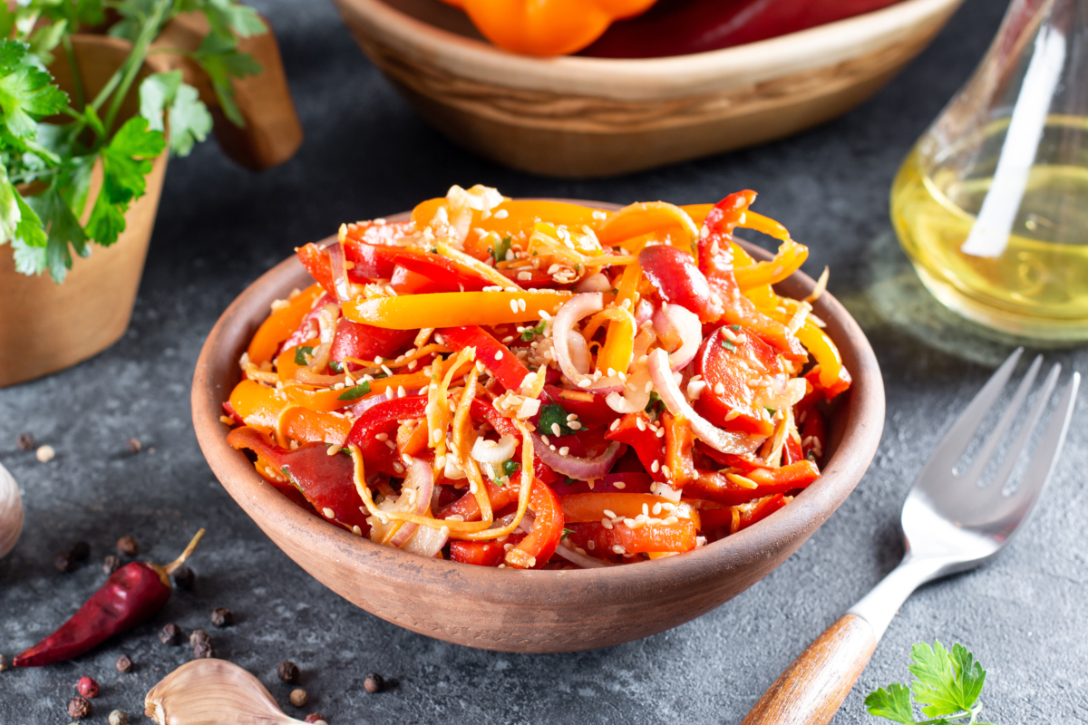 Болгарский перец по-корейски — это популярное блюдо, которое обогатит любое меню. Салат сочетает в себе сладость свежих перцев с пряными корейскими специями, создавая гармоничное сочетание вкусов. Его можно подавать как отдельную закуску или в качестве гарнира к основным блюдам, добавляя яркие цвета и аппетитный аромат на стол, сообщает канал "Еда от ШефМаркет".