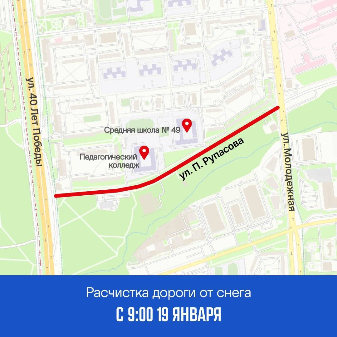 19 января с 9:00 - ул. Рупасова от ул. 40 лет Победы до ул. Молодежная