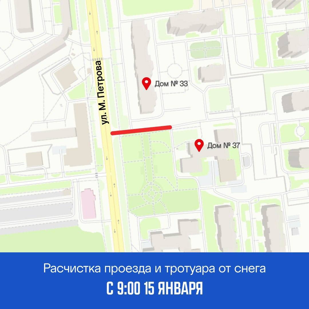 - проезд и тротуар от ул. М. Петрова между домами по ул. М. Петрова 33, 37