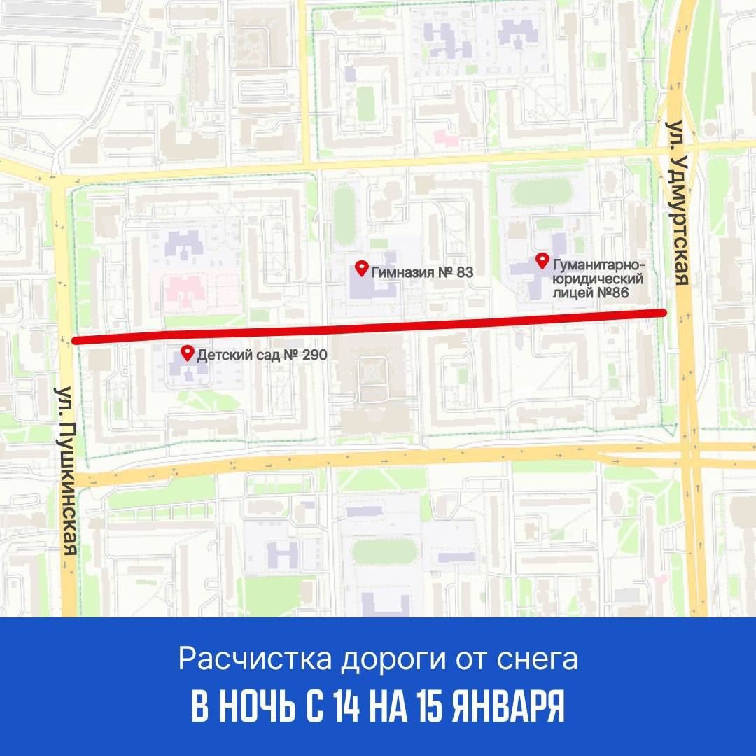 В ночь с 14 на 15 января с 20:00 - ул. Г. Кулаковой от ул. Пушкинская до ул. Удмуртская