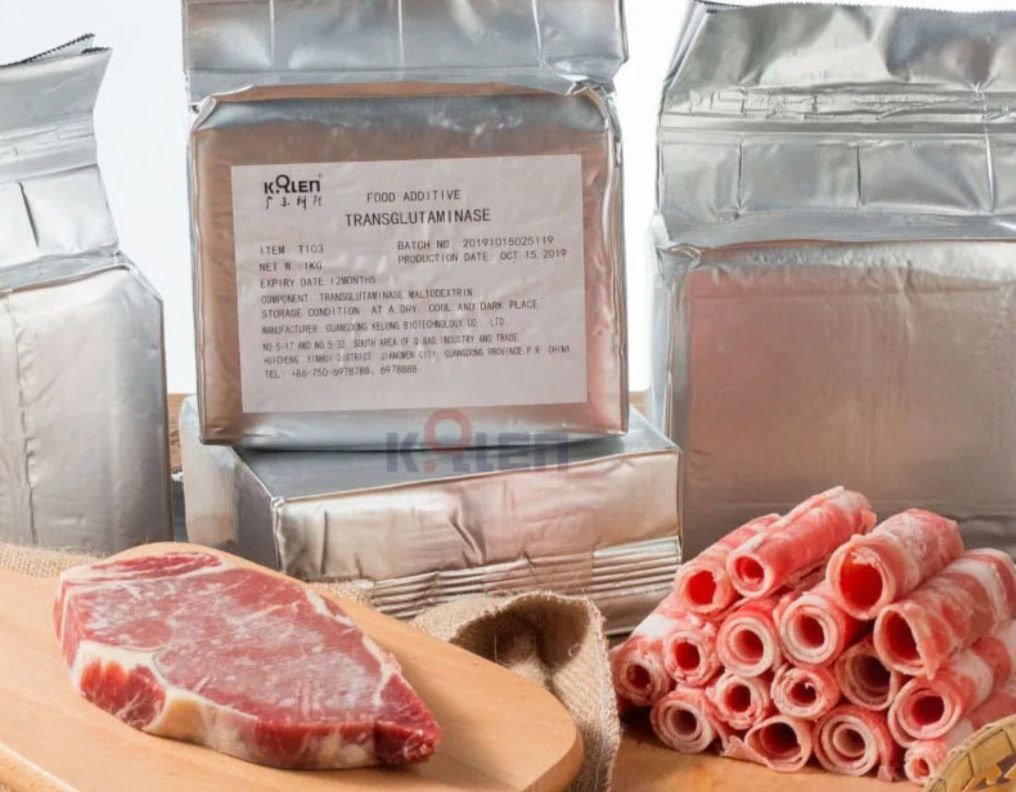 Продукты, содержащие этот фермент, используют для соединения кусочков мышечной ткани в единый кусок, что позволяет создать спортивные деликатесы, как ветчина или стейки. Мясной клей обладает свойством удерживать влагу, что позволяет снизить производственные затраты и время приготовления, но за это приходится платить здоровьем.