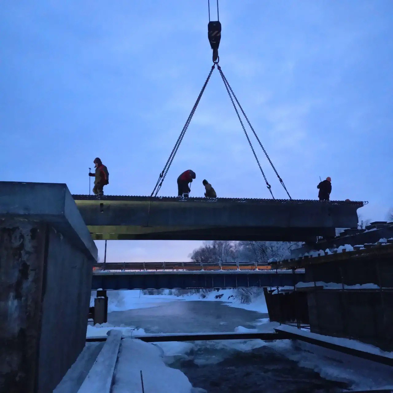 На мосту через Сиву в Воткинском районе начался монтаж балок.