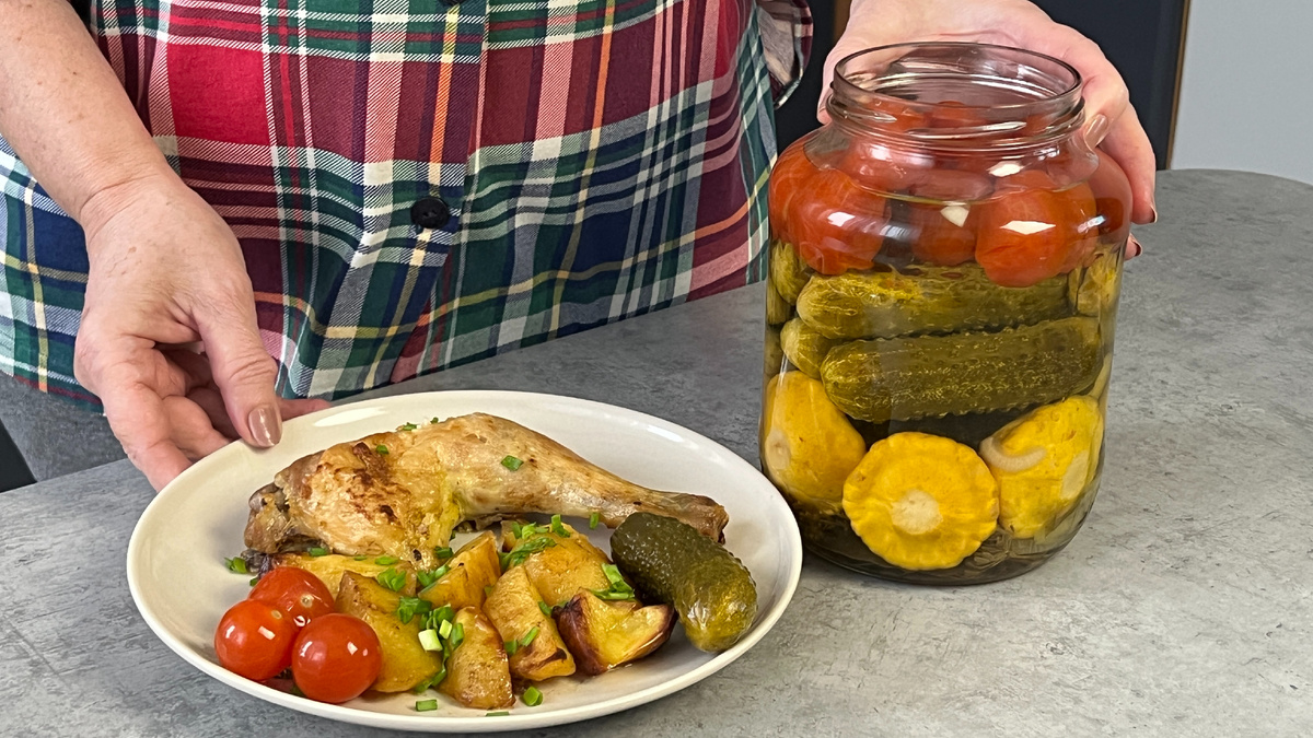 В такую холодную погоду особенно хочется чего-то привычного, простого и согревающего. Поэтому на ужин были выбраны ароматные куриные ножки с картошкой. К ним открыли заготовленную ранее баночку — это всегда вкусно и уютно.