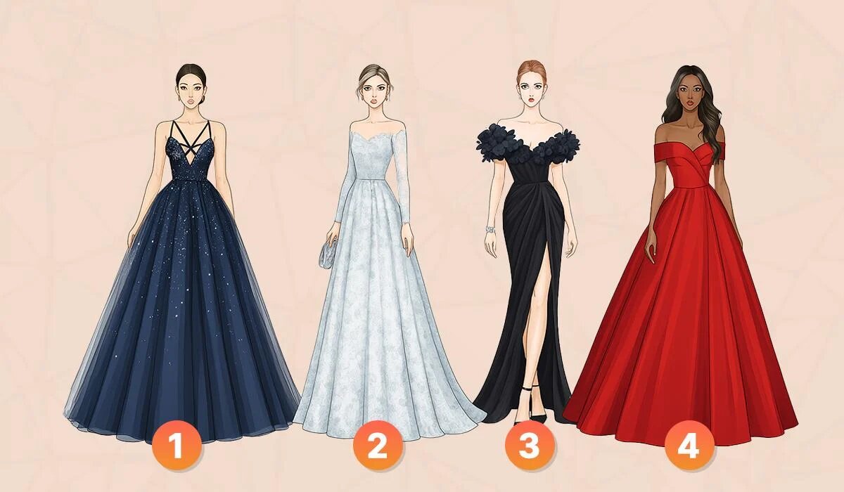 - Платье 1: Если ваш выбор пал на первое платье, это признает вашу добродушную натуру. Вы - миролюбивый человек с выдающейся внимательностью к деталям. При этом обладаете внутренней силой и мудростью, не позволяя эмоциям управлять своими решениями.