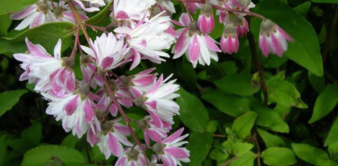 Дейция — кустарник семейства гортензиевых, родом из Восточной Азии. В условиях гортензийской брани она держится спокойно: солнце не палит как в пустыне, дождь не заливает корни, а перепады температуры воспринимает без драм. В июне куст будто исчезает в облаке цветов белых или нежно-розовых, а листьев почти не видно среди такой картины. Это через красоту, а не через сложную опеку.