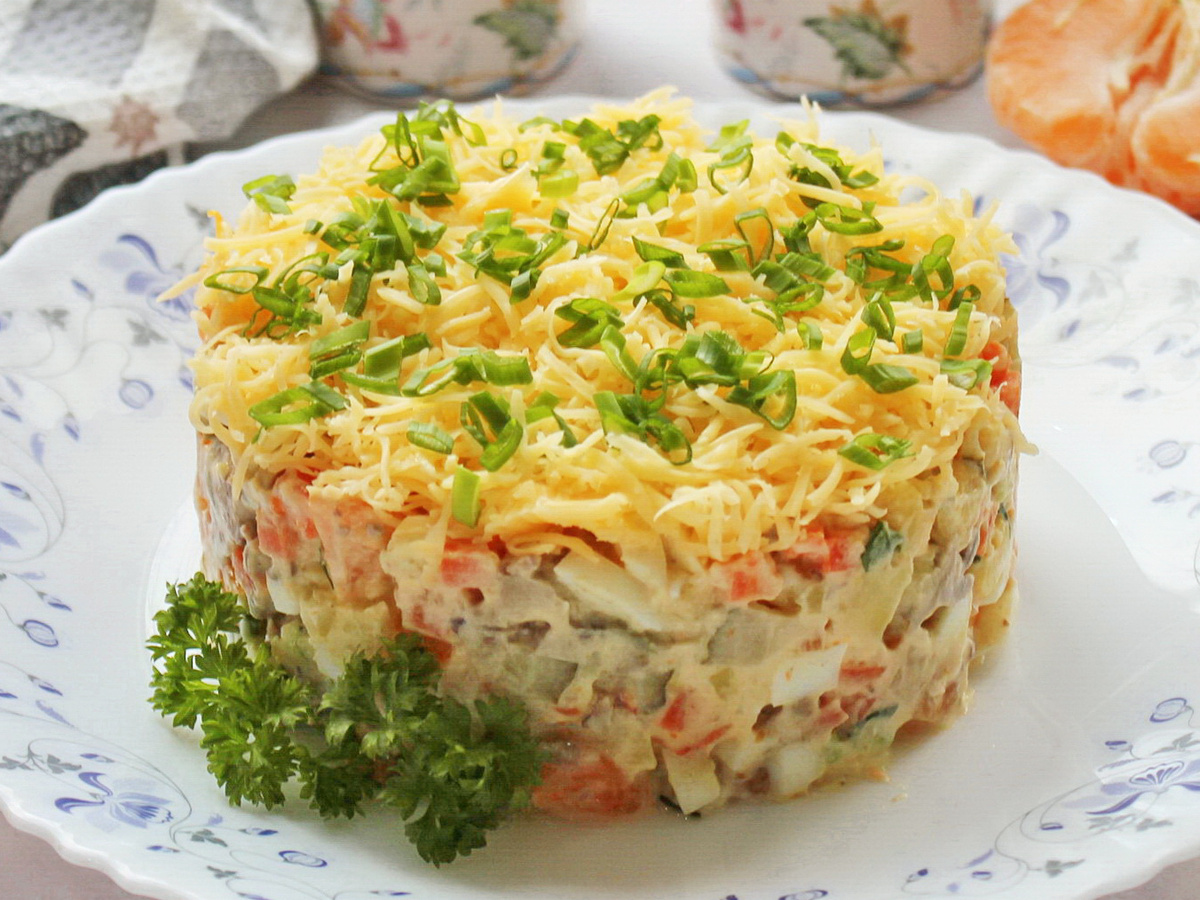Итогом становится не просто салат, а маленькая история за столом: знакомые ингредиенты становятся частью праздничной паузы, которая длится до последнего куска.