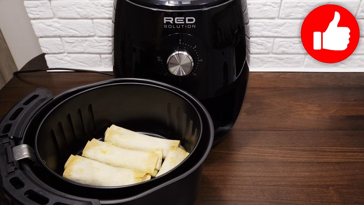 Начинку готовят из тёртого сыра, варёных яиц, майонеза, чеснока и зелени. Лаваш режут на прямоугольники 10 на 15 см, равномерно распределяют начинку по всей площади и сворачивают в рулетики. Рулетики укладывают в корзину аэрогриля, сверху смазывают лёгким слоем масла и запекают 45 минут при 200C. В итоге получается хрустящая корочка и мягкая внутренняя текстура.