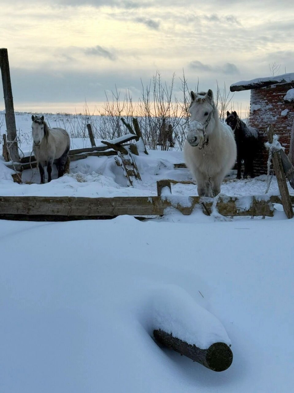 «Вокруг заброшенные постройки, лошади очень замёрзшие, на них прямо колтуны снега. Они стоят на привязи, поэтому не могут даже походить, подвигаться, чтобы согреться. Мы почистили снег в надежде на то, что сотрудники государственных органов приедут, чтобы помочь животным», — поделились волонтеры.