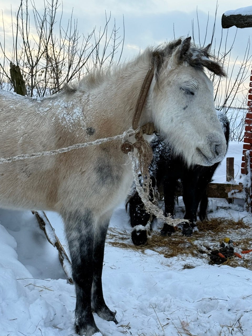 Напомним, Альянс защитников животных сообщил в соцсетях, что лошади живут в открытом поле, добывая корм из-под снега. После публикаций в соцсетях хозяин перевел их к заброшенной постройке, где животные остаются на привязи.