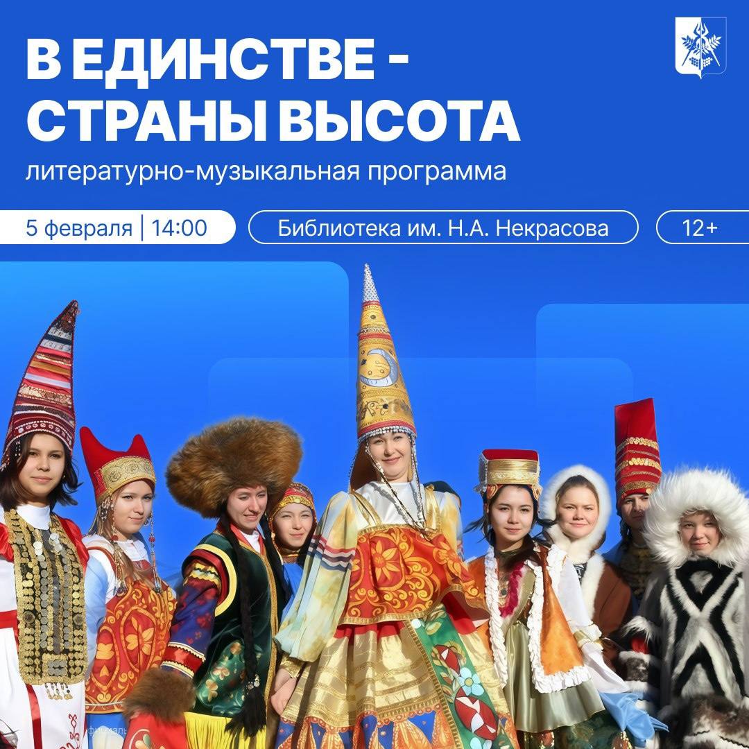 «В единстве - страны высота» (12+): 5 февраля в библиотеке им. Н.А. Некрасова пройдет литературно-музыкальная программа.