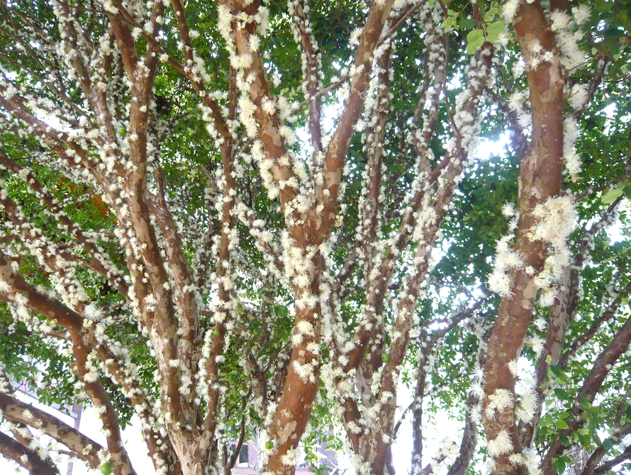 Цветы: Период цветения еще одно захватывающее событие: маленькие белые цветочки появляются прямо на стволе и ветвях с изящным ароматом.