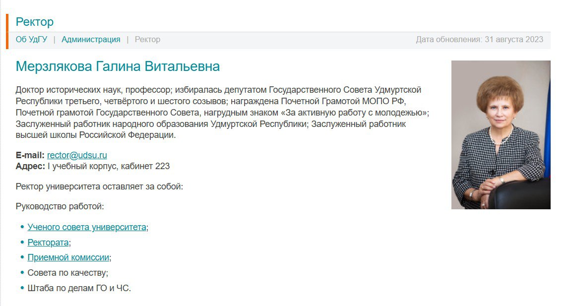 На сайте УдГУ ректором пока указана Галина Мерзлякова