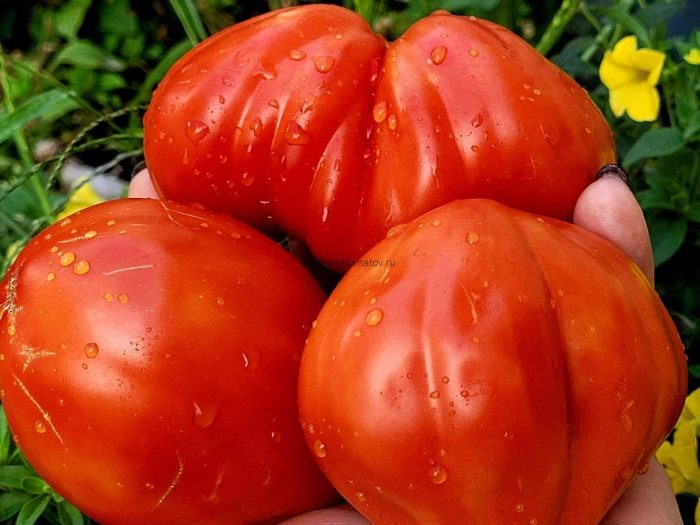Плоды данного сорта имеют уникальную сердцевидную форму с характерным «носиком». Они достигают ??? в 150–200 граммов, отличаются тонкой, но прочной кожицей и насыщенной мякотью. В свежем виде эти томаты прекрасно подходят для салатов и консервирования.