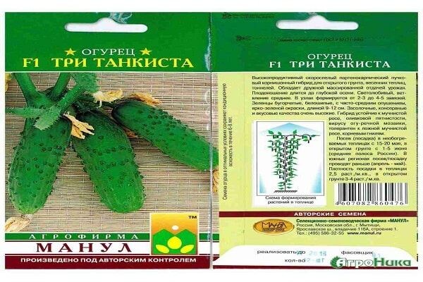 Гибрид Три танкиста F1 — пучковый партенокарпический огурец, который завоевал признание за высокую урожайность, устойчивость к ряду болезней и приятный вкус. Растение индетерминантное, плоды созревают одновременно в пучках, что удобно для сбора и консервирования.