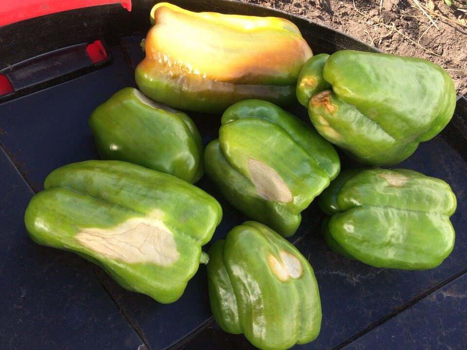 Солнечные ожоги возникают, когда плоды слишком долго подвержены интенсивному солнечному свету. Поначалу это проявляется в виде светлых пятен на поверхности перца, которые затем могут загнивать.