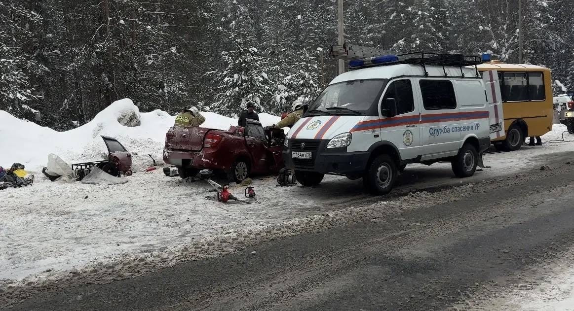 Мужчина погиб при столкновении легковушки со школьным автобусом в Якшур-Бодьинском районе Удмуртии, сообщает Госавтоинспекция Удмуртии