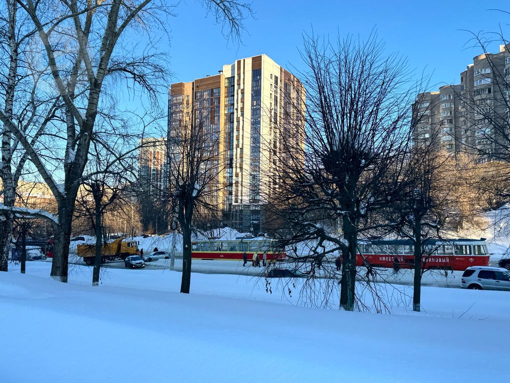 Трамваи вновь перестали идти в Металлург и обратно в Ижевске. На этот раз на путях застрял грузовик.