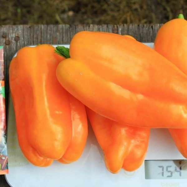 Плоды этого гибрида представляют собой кубовидные формы с весом от 150 до 170 граммов, что делает их идеальными для фаршировки. Их ярко-оранжевая окраска служит визуальным индикатором высокого содержания каротиноидов, что делает их не только красивыми, но и полезными. Плотные стены плодов гарантируют хорошую сочность и насыщенный вкус, что усиливает их привлекательность в кулинарии.