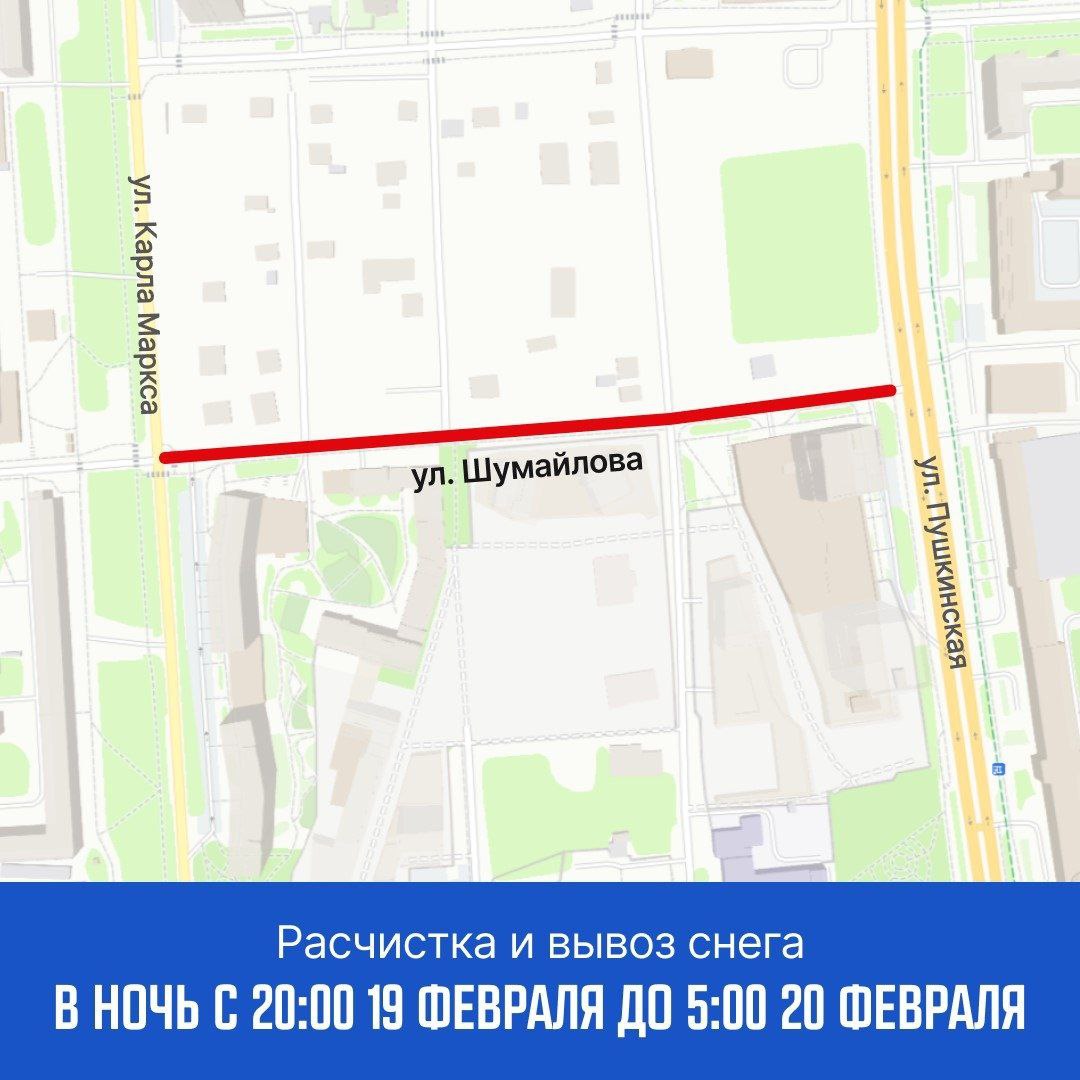 В ночь с 20:00 19 февраля до 5:00 20 февраля - ул. Шумайлова от К. Маркса до Пушкинской
