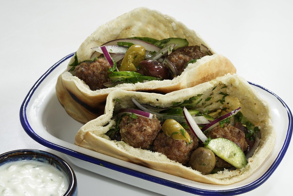 Пита с говяжьими фрикадельками — это замечательный пример средиземноморского фастфуда, который легко вписывается в российскую кухню. Нежные фрикадельки, в которых ощущается легкий аромат корицы, отлично гармонируют с сочными помидорами, хрустящими огурцами и оливками. Чтобы усилить вкус, можно добавить греческий соус дзадзики или ароматный итальянский песто.