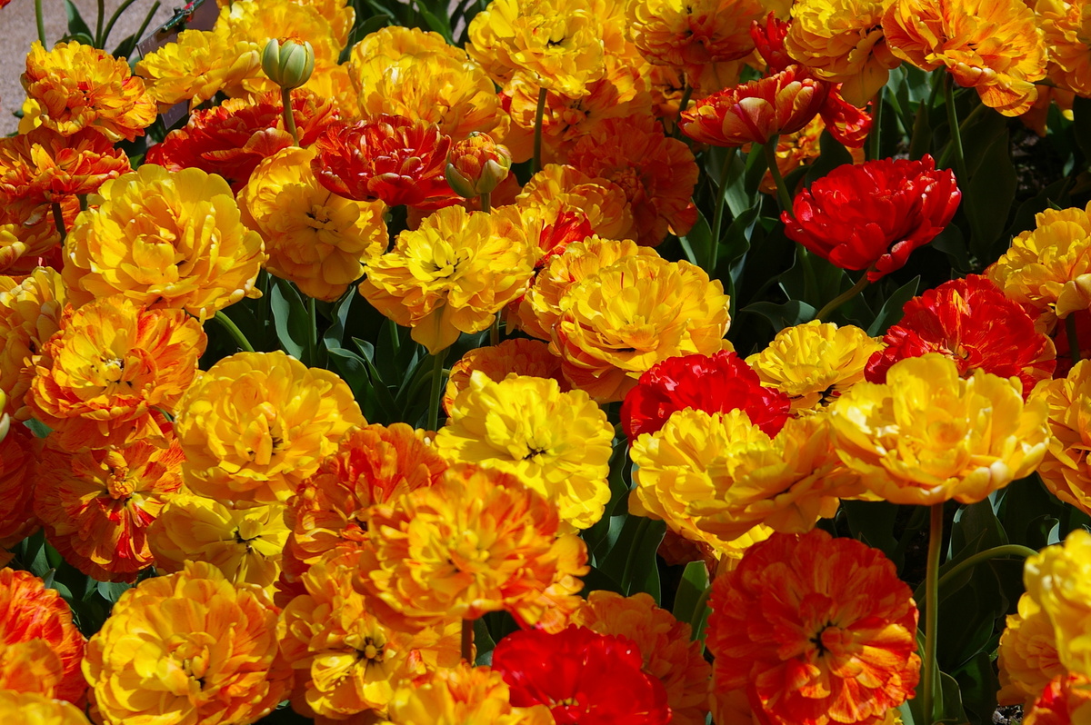 Ритм из красивых махровых тюльпанов (Tulipa) и пионов (Paeonia) можно задать на любой клумбе. Тюльпаны могут бесследно исчезнуть после цветения, оставаясь в тени своих пышных соседей — пионам. Эти растения идеально дополняют друг друга, создавая гармоничный садовый ансамбль.