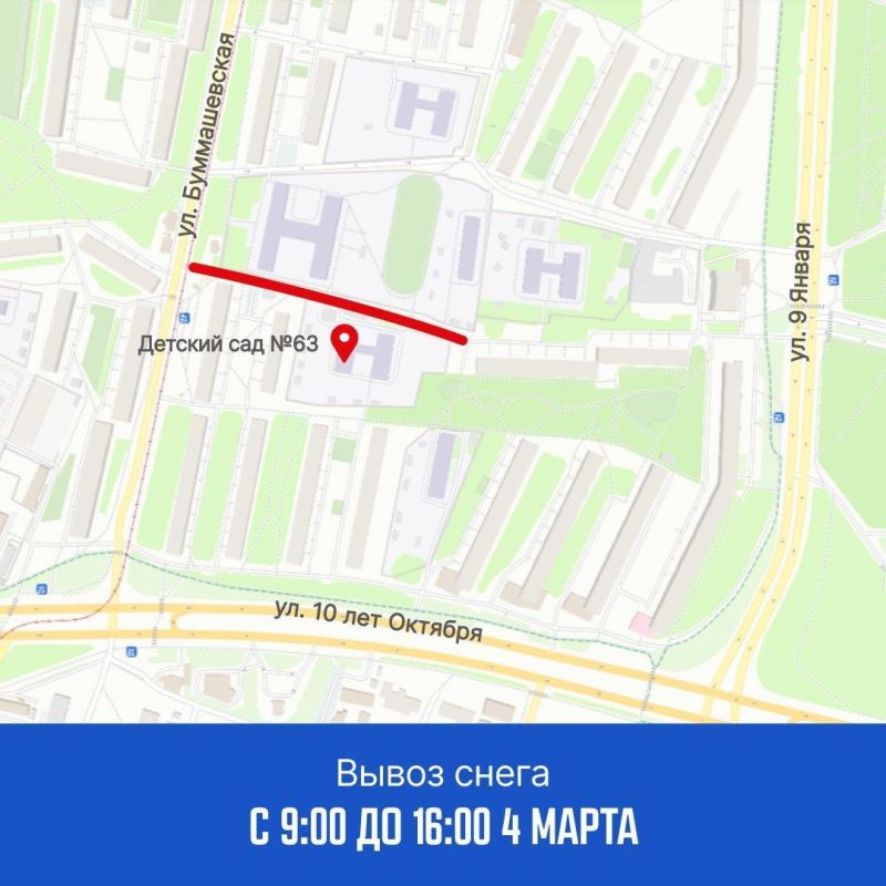 4 марта с 9:00 до 16:00 - проезд от ул. Буммашевская до здания по ул. 9-е Января, 181а
